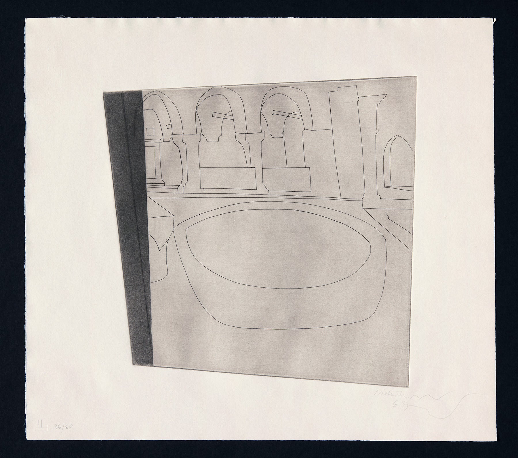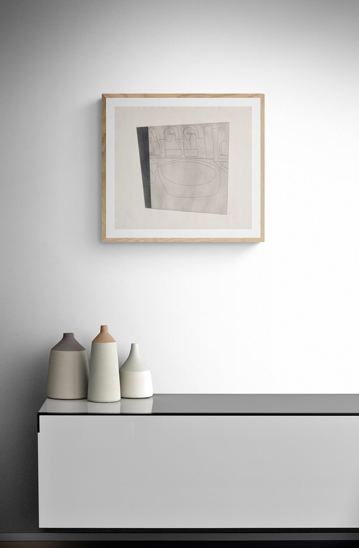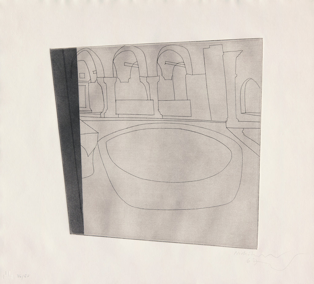 An original etching and aquatint from two plates on velin Rives wove paper from the portfolio Six Etchings (Lafranca 65, 86, 90, 97, 102 and 126 / Cristea 138-14). Signed Ben Nicholson in pencil, dated 1968 and numbered from the limited edition of 50 (there were also 6 artist's proofs). Printed by LaFranca, Locarno, Switzerland with their blindstamp lower left, and published by Editions Lafranca, Locarno. Referenced in Lafranca, 90, and Cristea, 139.