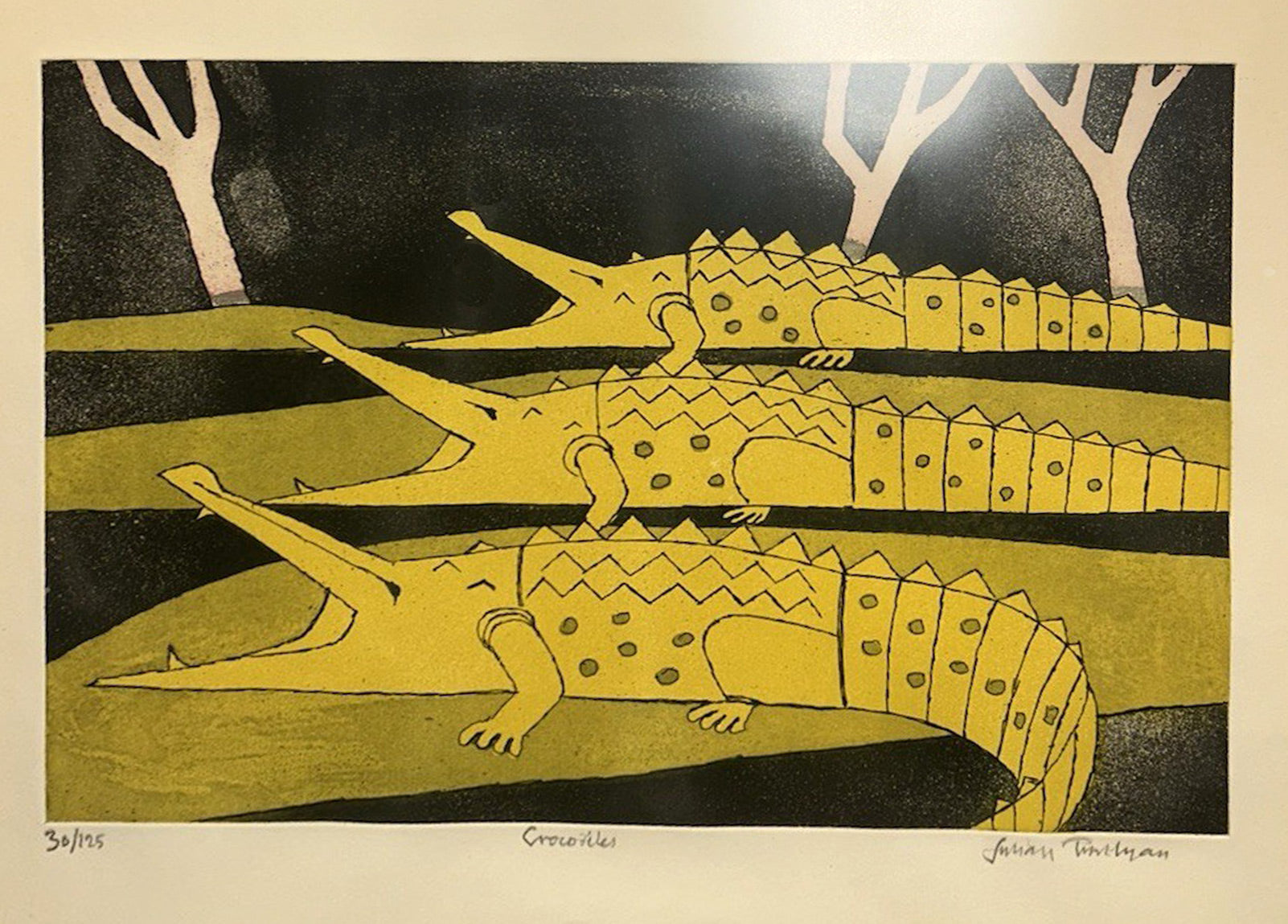 Full condition report to follow, with adequate margins, paper probably trimmed slightly. With few sales records and rarely seen, this is a wonderful rare and beautifully coloured Julian Trevelyan etching depicting a whimsical family of crocs.