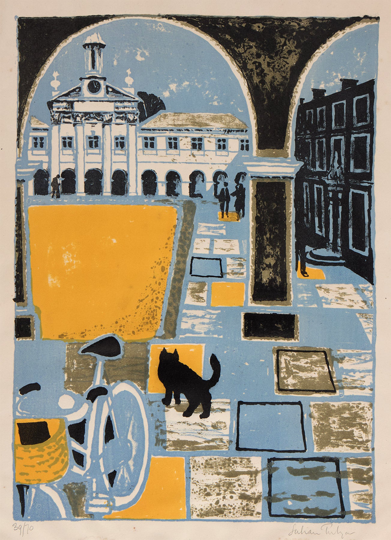 Available beginning of December, more images to follow. Emmanuel College , Cambridge, an original lithograph in colours from the artist's Cambridge Suite (1959-1962). Printed in 3 different colourways, this being the mauve & orange version (the other versions are turquoise & yellow, and green & grey), signed Julian Trevelyan in pencil and numbered from the limited edition of 70 (Turner mistakenly gives the size of the edition as 75) with 25 artist's proofs. On handmade Whatman wove paper, printed by George Devenish and published by Paul Cornwall Jones. Referenced in Turner, 120. Image size: 532mm x 382mm.